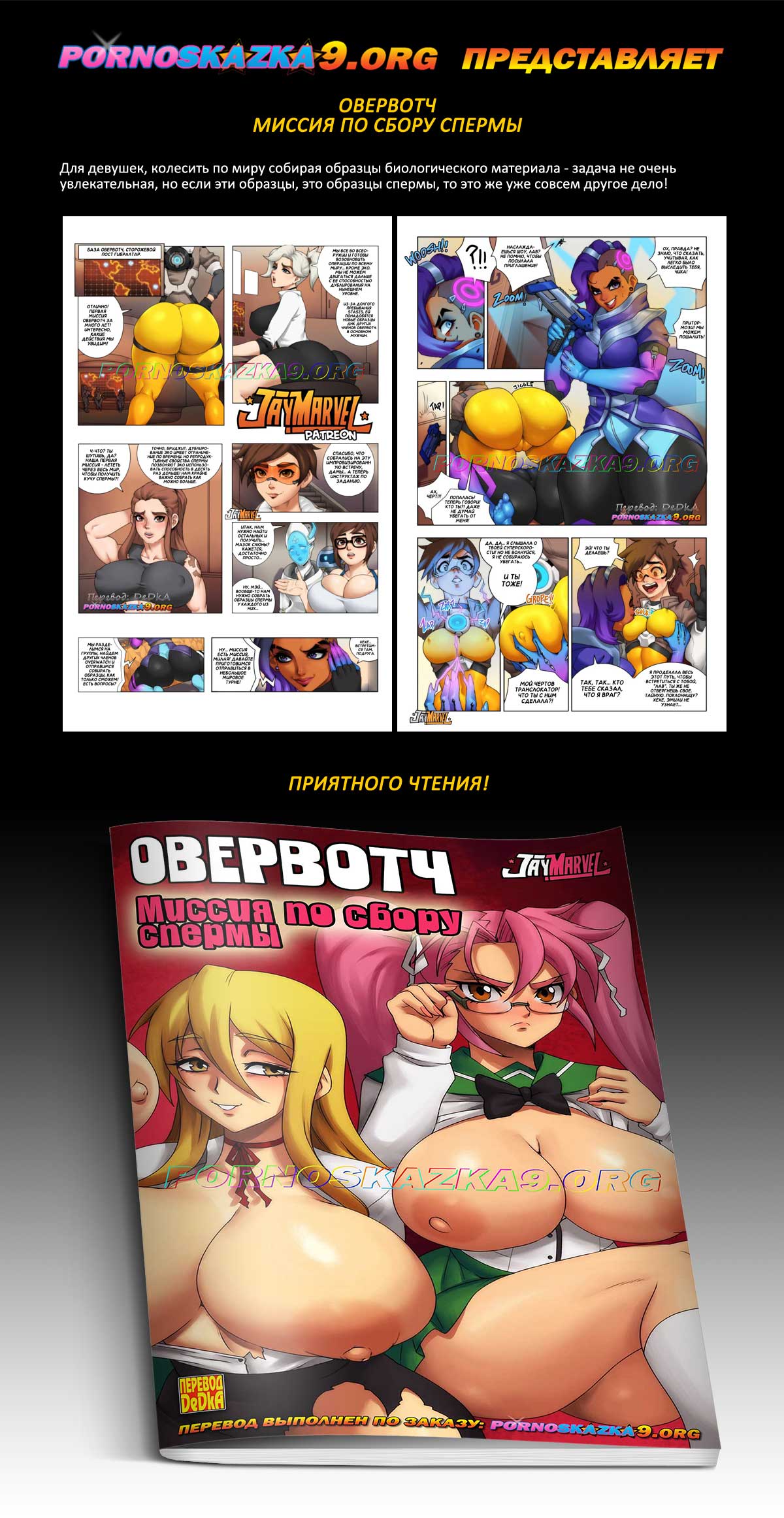 Порно комикс «Овервотч. Миссия по сбору спермы.» Для девушек, колесить по миру собирая образцы биологического материала — задача не очень увлекательная, но если эти образцы, это образцы спермы, то это же уже совсем другое дело!